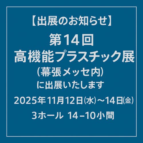 2025.11.03 【出展のお知らせー第14回 高機能プラスチック展に出展いたします】 当社は、2025年11月12日(水)~14日(金)に幕張メッセで開催される「高機能素材Week」内の第14回 高機能プラスチック展に出展いたします。ブース番号は3ホール 14-10です。 なお、今回の展示では、中国・四川 […] 続きを読む